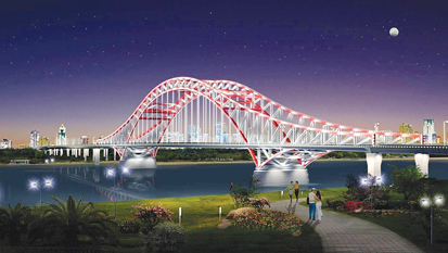 長淮衛公路橋及接線工程全長14.1公里。整個工程除長淮衛公路橋外,還包括兩座下穿鐵路立交橋和兩座小型橋梁,工程概算總投資約18億元。據介紹,長淮衛公路橋總長4266米,南起龍子湖區長淮衛鎮,北接淮上區吳小街鎮。大橋主橋長360米,寬42.5米,為雙向八車道;引橋部分略窄,寬41.5米。長淮衛橋采用桁架拱橋橋型,主體為鋼結構,遠望如飛龍橫跨淮河,氣勢宏偉。我市現有的三座淮河公路橋分別是斜拉橋、梁式橋和懸索橋,如今再添桁架拱橋,一橋一景,仿佛橋梁博物館。
